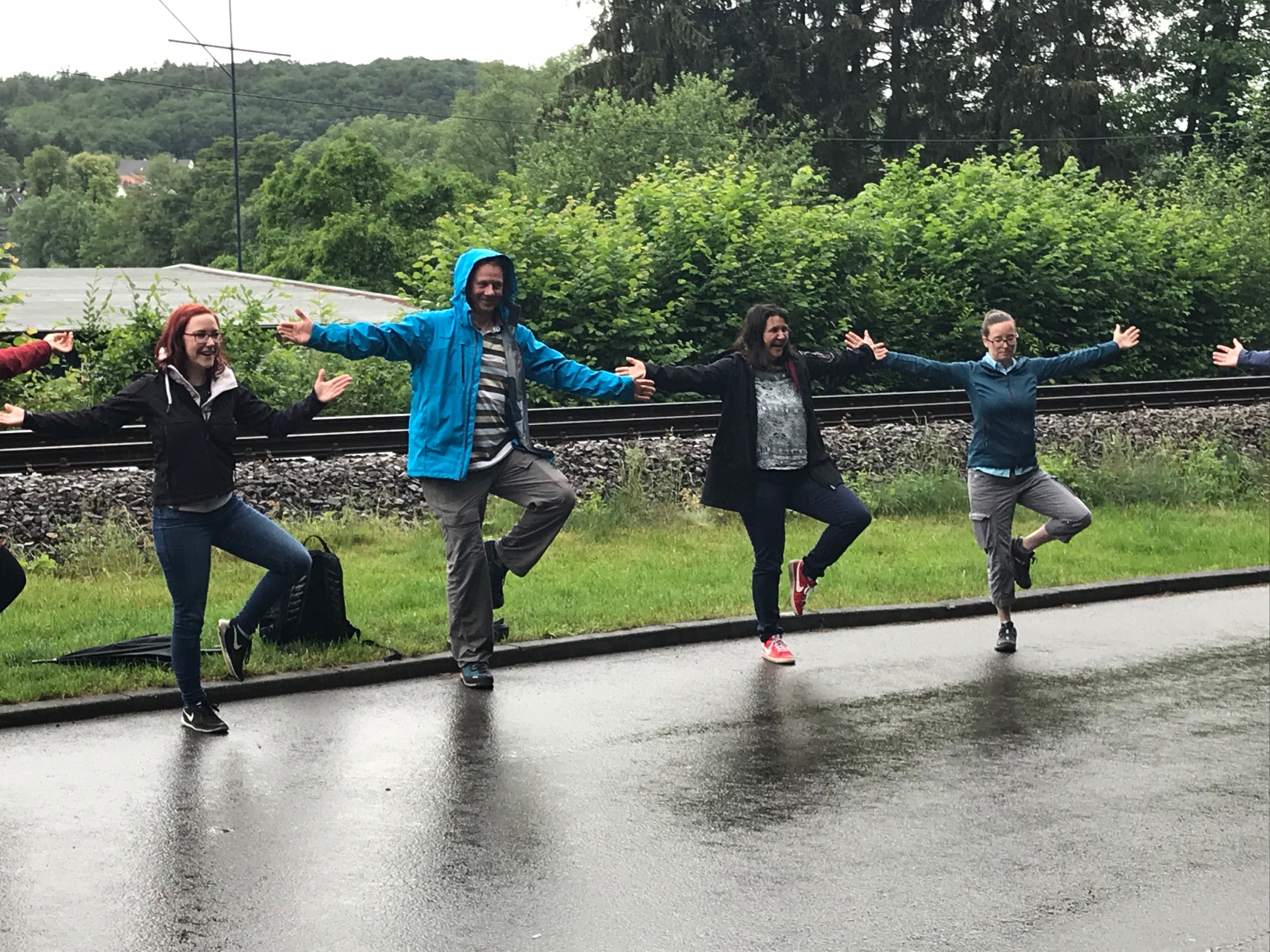 Die Rureifel macht glücklich! Das versprechen zumindest ihre Werbebroschüren. Und wirklich, der Besinnungstag des ZfsA am 1. Juni hatte eine glücklich machende Wirkung. Das lag nicht nur an der wunderbaren Mischung von Wasser, Wiesen, Felsen und Wäldern, die die Rureifel zwischen Obermaubach und Zerkall charakterisiert. Es lag auch an der von der Planungsgruppe bestens vorbereiteten Spurensuche nach dem Glück. An mehreren Stationen auf der Wanderung wurden Zugänge zum schönsten Gefühl im Leben ausprobiert.