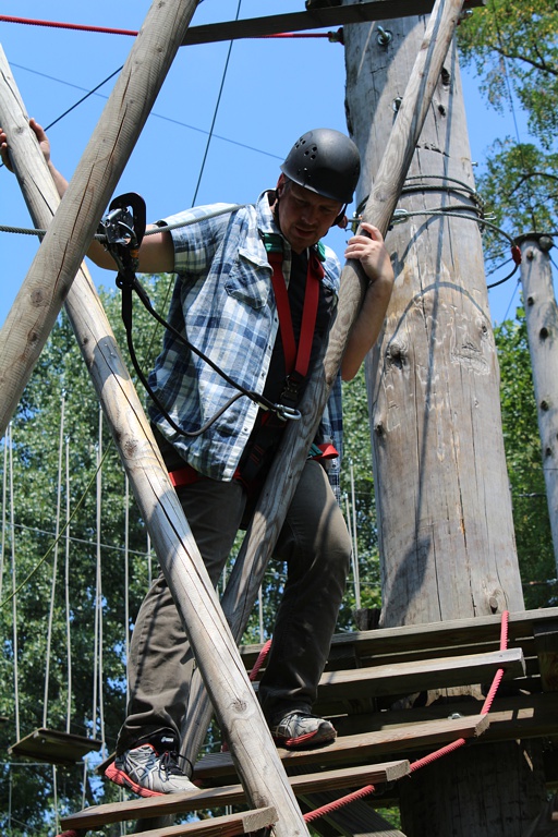 Im dortigen Kletterpark stieg der Adrenalinspiegel schon beim respektvollen Blick in die Höhe. Abwechslungsreich unter Bäumen oder mit Blick auf den See kletternd, galt es sich selbst und jede Menge Hindernisse auf dem Parcours zu überwinden. Gut zu sehen: Mit jedem Meter wuchs das Vertrauen ins Seil, in die Sicherung und in die eigenen Kräfte. Einige belohnten sich danach mit einem Sprung ins kühle Nass des Sees. Dass es im Brauhaus in der Kölner Innenstadt danach bestens schmeckte, war nach diesen Stunden kein Wunder. Hier rückte man dann gemütlich zusammen. Zeit zum Plaudern über Berufliches und Privates. Unterm Strich: ein Mitarbeitertag mit schönstem Mehrwert!