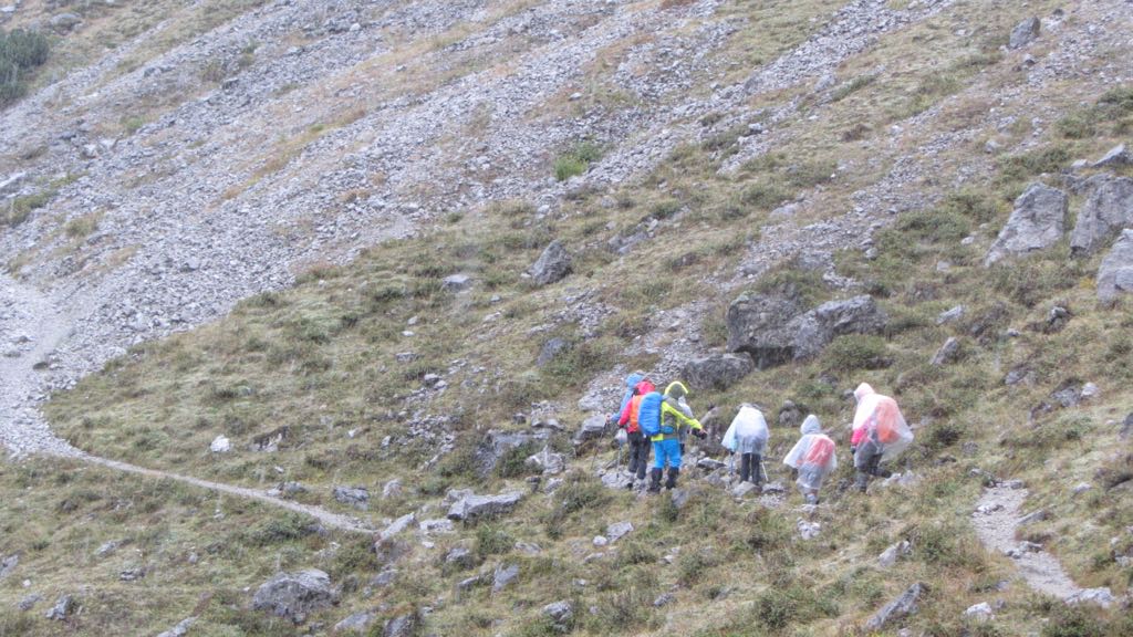 Erstens kommt es anders und zweitens als man denkt. Dieser Satz könnte über der diesjährigen individualpädagogischen Hüttentour des ZfsA stehen. Noch ganz nach Plan erfolgten die erste Übernachtung im Kleinwalsertal und der anstrengende, aber herrliche Aufstieg zur Fiderepasshütte. Dann jedoch war Petrus für eine Überraschung gut. Beim frühmorgendlichen Blick aus dem Hüttenfenster präsentierte sich eine weiße, nebelige Berglandschaft. Unerreichbar damit das nächste Ziel, die Mindelheimer Hütte. Nun war gemeinschaftliches Improvisationstalent von Kindern, Eltern und Pädagogen gefragt. Talwärts lautete die neue Marschrichtung, was sich angesichts massiver Regen- und Schneefälle auch als keine leichte Übung erwies.